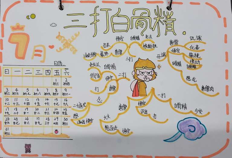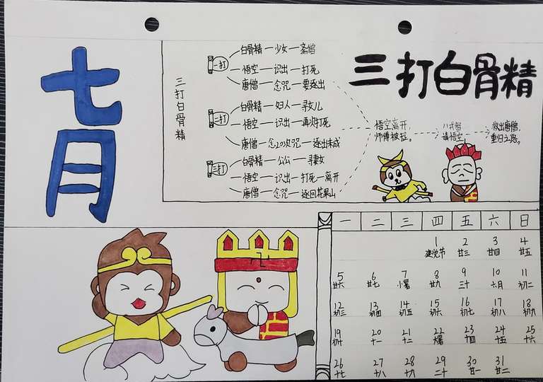 1月石猴出世、2月大闹天宫、3月小圣施威降大圣、7月三打白骨精